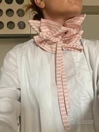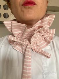 Colletto arricciato e regolabile a piacimento realizzato a mano in cotone rosa pallido con riga bianca