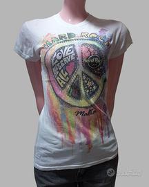 Malta, bianca, simbolo pace con brillantini, taglia S, 100% cotone