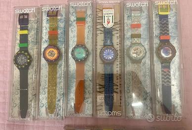 Collezione da 17 orologi Swatch anni 90 di diversi tipi: Scuba, cronografo Gran Prix, Silvie & Cherif defraoui, niklaus troxlex..