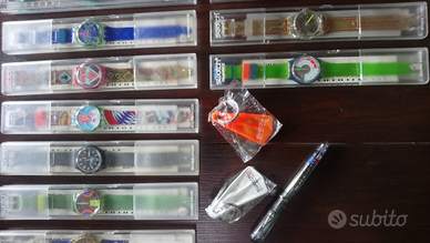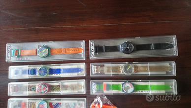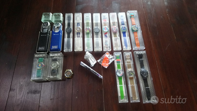 Vendo intera collezione di orologi Swatch originali anni '80. La collezione è composta da 16 pezzi tra i quali 4 chrono, 1 stop swatch, 1 skin, 1 scuba e 1 automatico. Vari gradi di utilizzo, alcuni modelli non sono mai stati usati. Completano la collezione 2 portachiavi e 1 penna, tutto marchiato Swatch. Prezzo trattabile previo contatto. Grazie.