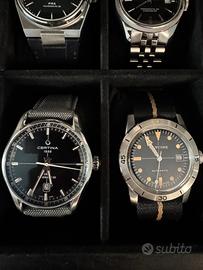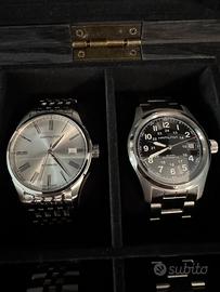 Da collezione Privata. Orologi Automatici Swiss Made. Sono presenti i seguenti modelli: -Tissot Prx, Powermatic 80, quadrante verde, 40mm. -Tissot Ballade, Powermatic Certificato COSC, quadrante nero, 39mm. -Mido Belluna, ETA 2824, quadrante bianco, 40mm. -Mido Baroncelli, ETA 2824, quadrante nero, 38mm. -Hamilton Valiant, ETA 2824, quadrante argento, 40mm. -Hamilton Khaki, ETA 2824, quadrante nero, 38mm. -Certina DS1, Powermatic 80, quadrante nero, 40mm. -Glycine Sea Kraken, Sellita SW200, quadrante nero, 39mm. Tutti i modelli sono originali, completi di corredo e perfettamente funzionanti. Valuto offerte per singoli orologi oppure multiple. Sono a disposizione per qualsiasi informazione.