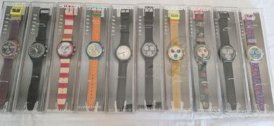 Collezione di 96 swatch degli anni 80 e 90. In totale 21 crono, 17 scuba, 15 automatici e 42 classici e un'edizione limitata di halloween completa di tutto. Solo 5 orologi sono stati usati, il resto sono tutti nuovi con le loro scatole originali dell'epoca. Sono inclusi molti modelli di valore collezionistico. Altre foto disponibili . Venduto in blocco, non vendo pezzi per unità, non sono interessato a scambi o permute. Grazie