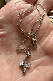 Collier/collana in oro bianco 14k con pendente a croce con zirconcini, da portare sempre al collo.