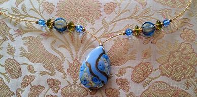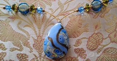 Collier in minuterie di vetro di Murano con particolare pendente a goccia di lavorazione artigianale in tonalità azzurro.