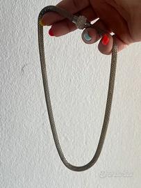 Collier in maglia mesh argento, elegante e luminoso, con elemento centrale cilindrico decorato da micro‑cristalli. Modello rigido ma flessibile, molto raffinato e perfetto sia per outfit quotidiani che per occasioni. ✔ Maglia mesh argento ✔ Cilindro centrale con cristalli ✔ Chiusura magnetica (se presente) / pratica da indossare ✔ Condizioni ottime, nessun difetto Pulito e pronto da indossare. #collana #mesh #argento #gioielli #accessoridonna #elegante #fashion #luminoso