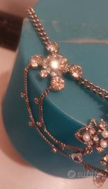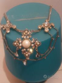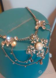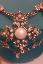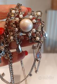 Prezioso Collier Vintage in acciaio. Incastonate Madreperle e Strass. Elegante per occasioni speciali.