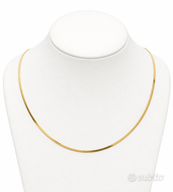 Gioielleria Corvino propone : Collier maglia piattina semi rigida, lavorata In Oro Giallo 18kt - 750 Tipologia Gioiello in Oro Peso : 5,23 Grammi circa Lunghezza Girocollo : 45 Cm Larghezza maglia : 2 Mm Punzonato e certificato 18 Kt - 750 Personalizzazione della misura Desideri una misura diversa? Saremo lieti di realizzare il gioiello secondo le tue specifiche, curando ogni dettaglio con la massima precisione. Ti invitiamo a comunicarci la misura desiderata al momento dell’ordine. Si segnala che, per le personalizzazioni, il costo finale potrebbe variare in funzione del prezzo dell’oro al momento della lavorazione. Disponibilità degli articoli Per garantire un servizio impeccabile, ti invitiamo a contattarci preventivamente per confermare la disponibilità dell’articolo prima di procedere al pagamento. Un gioiello unico Ogni creazione nasce dall’incontro tra la tradizione artigianale italiana e l’eleganza senza tempo della manifattura di lusso. I nostri gioielli vengono presentati in raffinate confezioni regalo e accompagnati dal certificato di autenticità e qualità, che ne attesta l’origine e i materiali preziosi utilizzati. La garanzia è valida 12 mesi dalla data dello scontrino fiscale. Spedizione La consegna è assicurata, tracciata e rapida in tutto il mondo tramite corrieri DHL/UPS. Immagini Le immagini dei gioielli sono puramente illustrative. Eventuali lievi differenze di colore, riflessi o dettagli sono da considerarsi normali e derivano sia da fattori tecnici sia dalla natura artigianale delle creazioni. Ogni gioiello è unico e le fotografie possono mostrare leggere variazioni rispetto al prodotto finale. #gioielleriacorvino #collanadonna #oro18kt #gioielliartigianali #collier #collanapiattina