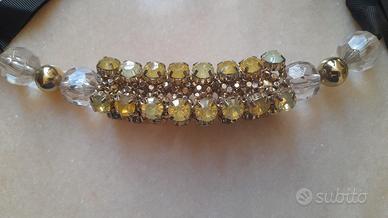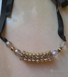 Collana con cristalli gialli e allaccio al collo con fettuccia