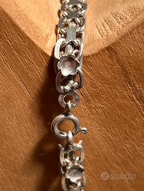 Collana in argento 800 naturale . La collana ha un design a maglie che ricorda lo stile Bismarck. Punzonato 62 AR quindi dí produzione aretini ed essendo solo 62 e’ una azienda molto storica !!Tutto visibile in foto. Prezzo nn trattabile.
