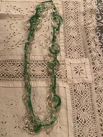 Stupenda collana in plastica verde menta stile vintage lunghezza cm 41