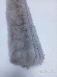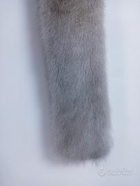 Collo di pelliccia grigio perla, foderata, con due bottoncini a scatto e un supporto per consentire di indossarla in vari modi, versatile, calda, bella e comoda.
