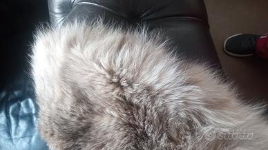 elegante collo originario canadese dai colori crema- beige dorato con macchie piu' scure definite..pelo caldo soffice e dalla morbidezza eccezionale..dotato di asole per