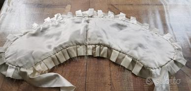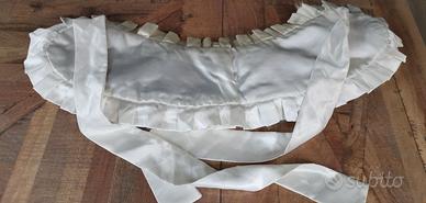 Foderato internamente e completato da un lungo nastro in raso tono su tono da annodare, perfetto per essere indossato su cappotti, abiti eleganti o per cerimonie e matrimoni invernali.