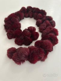 Collo in pelliccia vera a pon pon colore bordeaux. Lunghezza 103cm