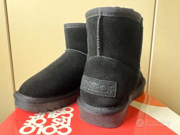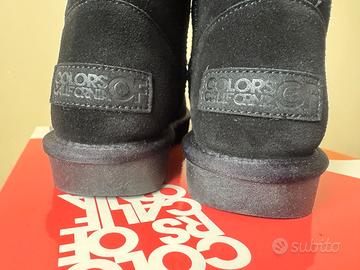 Colors of California MIWO Stivale in pelle scamosciata - Black - taglia 38 MAI USATO Stivale Ugg style colore NERO • Tomaia: 100% pelle scamosciata • Fodera: 50% WO 50% PL • Sottopiede: 50% WO 50% PL • Suola: 100% TPR • Calzata: Regolare • Altezza tacco: 1,5cm davanti, 2cm dietro • Altezza gambale: 11cm