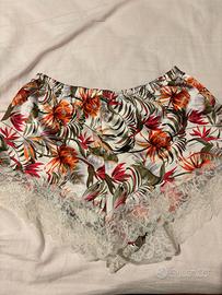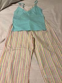-Completino donna intimo estivo : pantaloncini corti e top , tg. S . Marca Te ZENIS . Fantasia come da foto . 97% poliestere - 3% elastan . Ottime condizioni -Completino donna intimo estivo : pantaloni al ginocchio e top . Tg. S . Marca . DUNNES STORES . 100% cotone . Ottime condizioni Prezzo comprensivo di entrambi . disponibile ad inviare altre foto o informazioni .