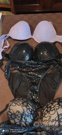 quello con pizzo 14 euro,gli altri due completi sono intimissimi e li vendo 10 euro ciascuno ,per ultimo i 3 reggiseni 5 euro l'uno.