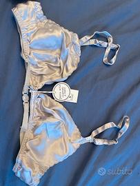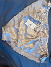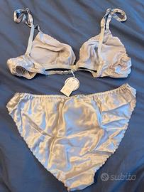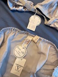 Completino intimo vintage da donna in 100% pura seta ricamato a mano, color grigio chiaro, di Valentino Garavani Bodywear, taglia terza 3a, nuovo ancora etichettato, solo consegna a mano zona roma centro/prati o balduina.