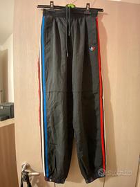Completo Adidas composto da felpa e pantalone di colore nero con scritta Adidas sul fondo della giacca e sugli elastici dei pantaloni.