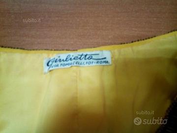 Completo pantaloni zampa di elefante e giacca/casacca colore giallo senape/oro lavorato finamente a mano con perline e pietre TG. 42/44 vero affare. Da intenditori. Zona San Giovanni in Laterano/Termini/Piazza Fiume