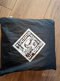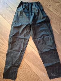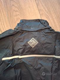 Caratteristiche del modello: colore nero, nylon leggero, cuciture nastrate, inserti rifrangenti, cappuccio ripiegato nel collo, pantaloni con cerniera laterale (facili da indossare sopra i jeans) e sacca/confezione.