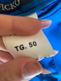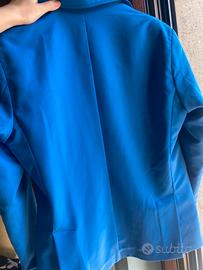 Elegante completo azzurro composto da giacca e pantaloni, taglia 50. Indossato solo una volta, praticamente come nuovo. Perfetto per cerimonie, eventi o occasioni speciali