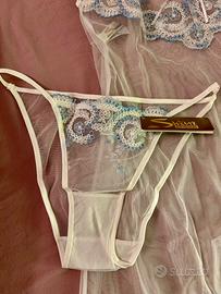 Completo babydoll e slip Swan in pizzo bianco e azzurro Misura slip 3 Misura babydoll 2