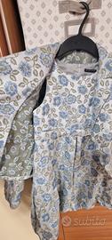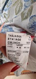 bellissimo completo per bambina, formato da vestito smanicato e giacca dai bordi arrotondati. usato solo una volta in una cerimonia in famiglia. bellissimi fiorellini blu e gonna a palloncino