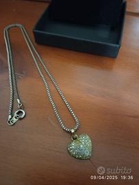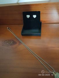 bigiotteria vintage, tema cuore, completo di collana con pendente cuore+orecchini con vite a farfalla, no rotture, lunghezza cm 30, circonferenza cm 60, materiale pietra e metallo.