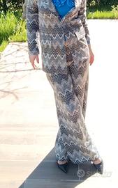 Completo in taglia unica giacca blazer e pantalone con elastico in vita in fantasia nei toni del grigio in stile Missoni