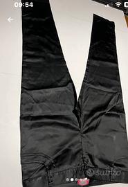 Realizzato in *raso nero lucido*, ideale per le serate ed eventi importanti ma anche molto casual per chi ama vestire con classe