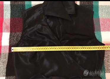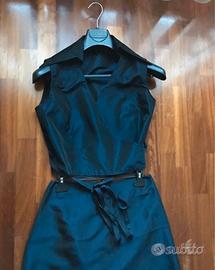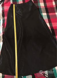Elegante completo donna con blusa smanicata allacciata in vita da nastro in gros grain e gonna lunga a trapezio con zip sul retro a scomparsa. Adatto per feste e cerimonie. Colore blu notte cangiante. Taglia 42, misure in foto. Indossato una sola volta. Guarda il mio armadio, trovi tanti articoli per uomo, donna, casa e accessori!!!!