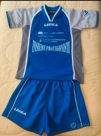 ⚡SPEDIZIONE RAPIDA⚡ NO SPEDIZIONE POSTE ITALIANE Completo sportivo Legea per bambini o ragazzi, composto da maglia e pantaloncini. - Maglia blu con inserti grigi e dettagli bianchi. - Pantaloncini blu con dettagli bianchi. - Logo Legea presente su entrambi i capi. - Scritta FONDO SOCIALE EUROPEO POR SICILIA 1° ISTITUTO COMPRENSIVO ELIO VITTORINI sul davanti della maglia.