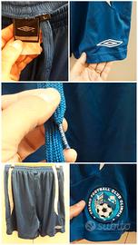 Pantaloncino misure: lunghezza elastico in vita a riposo 33 cm circa; altezza 43 cm circa; lo stemma societario davanti è ricamato in tessuto in rilievo e termosaldato, mentre dietro, il logo Umbro è ricamato in rilievo in filo bianco.