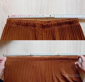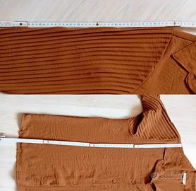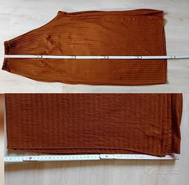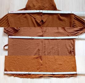 Completo in ottime condizioni,color cioccolato in taglia unica Camicia con bottoni in tinta,maniche plissettate,passanti per cintura (non presente),pantaloni plissettati molto ampi,comodi con elastico in vita che di estende fino a 55cm Misure in foto