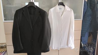 completo cerimonia/Sartoriale colore nero effetto raso taglia 57 calibrata. Camicia bianca cotone 100% collo 18 taglia (57 calibrata) Usato solo 2 volte Pagato 325€ + intervento del sarto SOLO CONSEGNA A MANO(Monterotondo e limitrofe + Saxa Rubra e limitrofe)