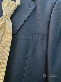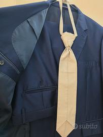 Elegante completo da cerimonia composto da giacca blu e gilet argento. Perfetto per occasioni speciali.