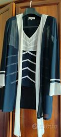 Completo 3 pezzi canotta pantalone e casacca blu e bianco con applicazione di perline usato solo una volta