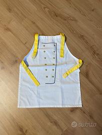 Set da chef per bambini, ideale per giochi di ruolo in cucina. - Include cappello da chef e grembiule. - Dettagli con bottoni dorati e bordi gialli. Grambiule: Larghezza 55cm Altezza 45cm Cappello: Diametro 15cm Circonferenza 47cm Due paia 6€ cad. Comprabili singolarmente Spedizione o ritiro a mano zona villarbasse