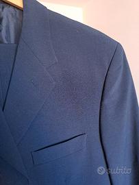 Completo classico estivo giacca e pantalone blu scuro. Taglia 50 usato 1 volta. 3 bottoni , giacca lunga.