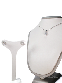 Completo collana e orecchini in oro bianco 750 18kt con zirconi.