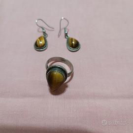 Ottimo set vintage in argento 925 con vera pietra di Occhio di Tigre.