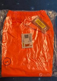 giacca e pantaloni, arancione alta visibilità, per vento e pioggia. nuovi mai indossati ancora in confezione originale. taglia L
