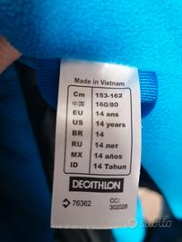 Completo da neve, giacca e pantalone Decathlon, età 14 misure come in foto. Usato solo poche volte, in ottime condizioni. Non si spedisce.