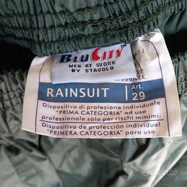 Dispositivo di protezione individuale "PRIMA CATEGORIA " ad uso professionale solo per rischi minimi. Blu city Men at work by Scavolo. Taglia XL Rainsuit. Completo Antipioggia con cappuccio estraibile.
