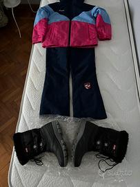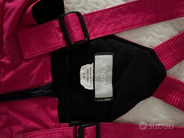 Bellissimo completo da sci bambina in ottimo stato usato poco e niente marca Phenix con sistema suku suku innovativo di regolazione lunghezza maniche giacca e pantalone (tramite laccetto interno) che consente di accompagnare il bambino nella fase di crescita regolando la taglia in modo semplice e veloce. Il pantalone è anche regolabile di vita tramite velcro. A corredo i guanti di alta qualità e stivali doposci taglia 37/38 con scafo in gomma suola antiscivolo imbottitura in calda lana sintetica in ottime condizioni come mostrano le immagini. Vero affare!!!