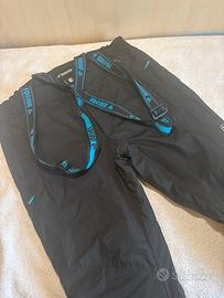 Completo da sci rella brugi, esternamente di colore nero con dettagli azurri interno azzuro, pantalone di colore nero con detagli azurri nelle tasche e nelle bretelle