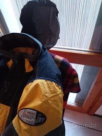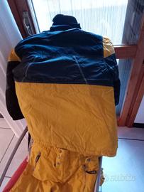 completo da sci con giacca a vento e pantalone da ragazzo il pantalone ha leggere ombre piu scure sul retro e volendo mettere un elastico nel fondo del sotto pantalone