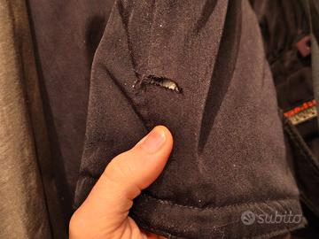 Ha soltanto un piccolo taglio (circa 2 cm) vicino all'orlo inferiore della gamba sinistra (lato interno).