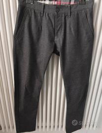 Completo da uomo dalla linea casual.Pantaloni tg 46,mod.regolare,gamba abbastanza stretta. Giacca tg 48.Tessuto 75% cotone, 25 % poliestere. Prodotto made in italy. Indossato solo in un paio di occasioni
